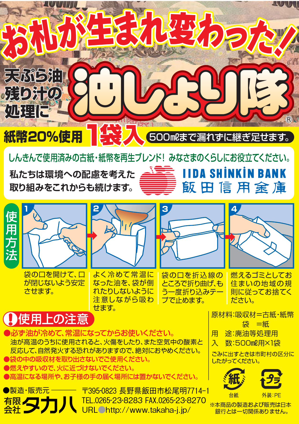 ■てんぷら油の処理パック「油しょり隊」